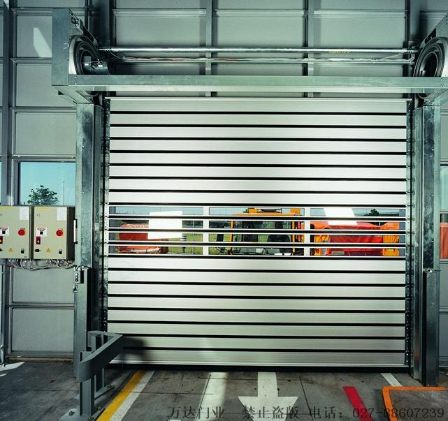 硬质霞山快速门具有可靠性、实用性、耐久性、易操作性以及低 廉的维修费用和 低噪 音等性能。在工业应用中,每年正常无故障动作可达15万次以上。门板条为双层结构,可以抵抗强风和暴风雨及大雪的侵袭。根据需要,还可以将隔热铝制板条和透明的板条组合安装起来。板条在卷起时相互无接触,这样可以保持板条常年无变形、无磨损。另外板条之间也没有直接连接, 它们的两端是和可以卷绕的钢带螺接在一起,各板条之间用密封胶条连接,这样既可以节省空间,又可以保证门帘不变形,而且板条的更换也非常简单、快捷。